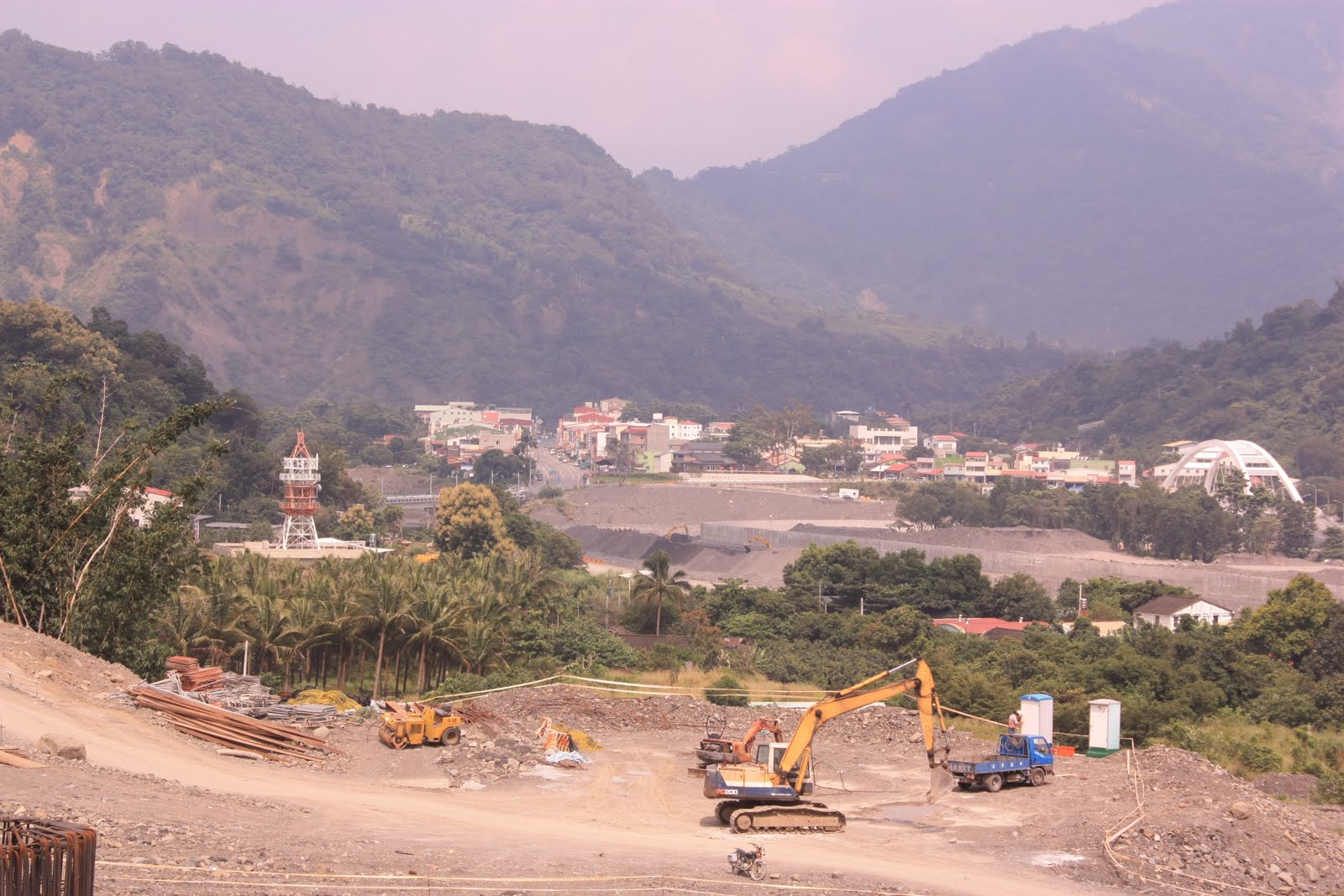 The views would have been spectacular without the awful humidity. In this image, the aforementioned Big Cliff, is just beyond the last clear green hill on the right. You can also make out where the lake would be, but the haze means there's nothing but a grey, indiscernable fuzz. Of course the remarkable thing that this image shows is just how swollen the river would have been during Typhoon Morakot in 2009. It's no more than a comparative trickle now.