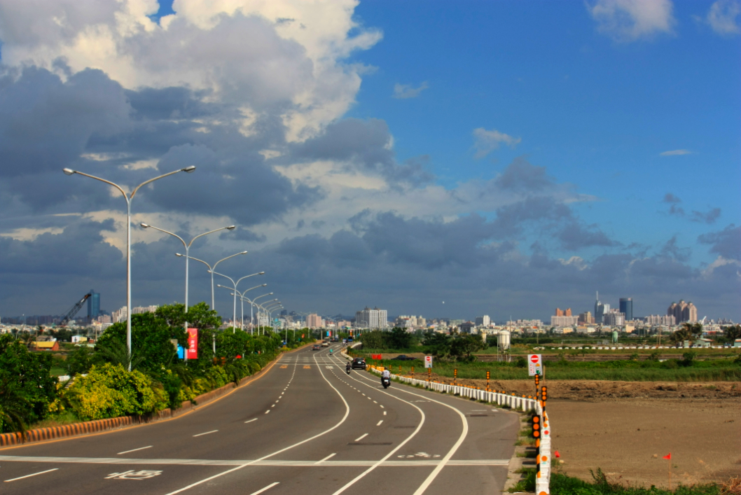 The building in the centre-foreground is a temple; it is not uncommon to find such large Buddhist temples throughout the countryside and outskirts of cities where land is comparatively cheaper. Although Taoism is the more popular religion in Taiwan by far owing to its' "folk" status, the Buddhist temples almost always dwarf the Tao temples in size and facilities. The two large box-like buildings off to the right of the image are apartment buildings just off Huwei road, which leads through the city's motel-district toward Tainan's largest nightmarket and, before that, to Costco, the famous U.S. wholesale store.